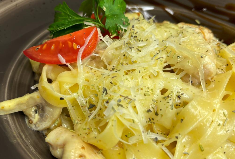 ФИЛЕ КУРИНОЕ, ШАМПИНЬОНЫ, БОЛГАРСКИЙ ПЕРЕЦ, СЛИВОЧНЫЙ СОУС