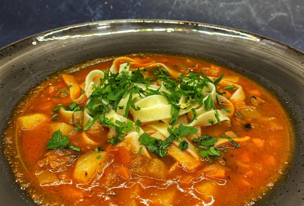 ГОВЯДИНА, ЛАПША, ПЕРЕЦ БОЛГАРСКИЙ, ПОМИДОР, БАКЛАЖАН, МОРКОВЬ